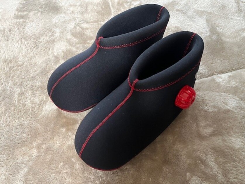 ・ニオイ:ウエットスーツの素材を使用しているのでゴムの匂いが靴下につきます。気になるなら足湯たんぽ用の靴下を決めておくと良いです。