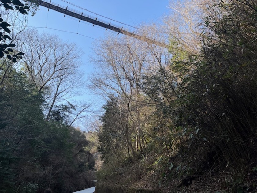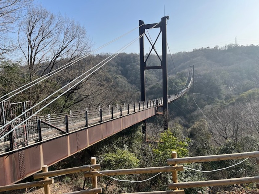 ほしだ園地の名物といえば、全長280m・高さ50mの巨大吊り橋 「星のブランコ」。