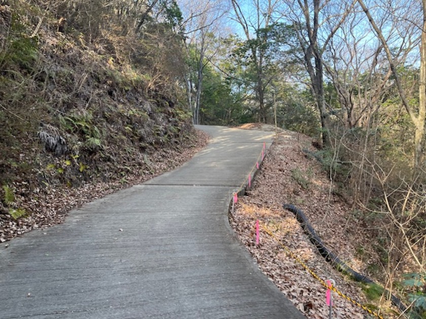 さらに歩き進むと、舗装中?の白い道が続くエリアがありました。道幅が広く歩きやすかったです。