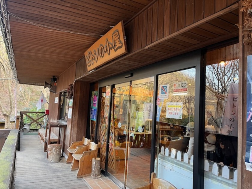 途中に売店の「ピトンの小屋」がありました。自販機もあったり、売店の周りには木製の机や椅子が設置されていて整備されているなって印象。
