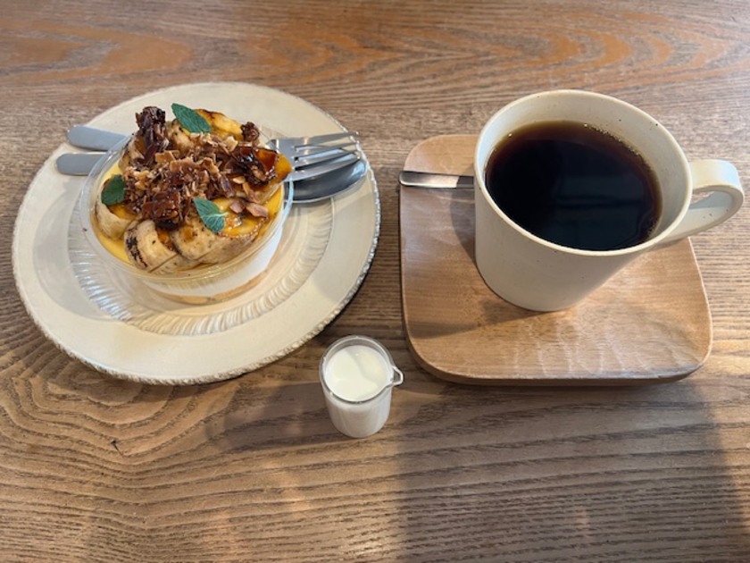 今回注文したのは、大和茶オーレ、ブレンドコーヒーとバナナのケーキです。