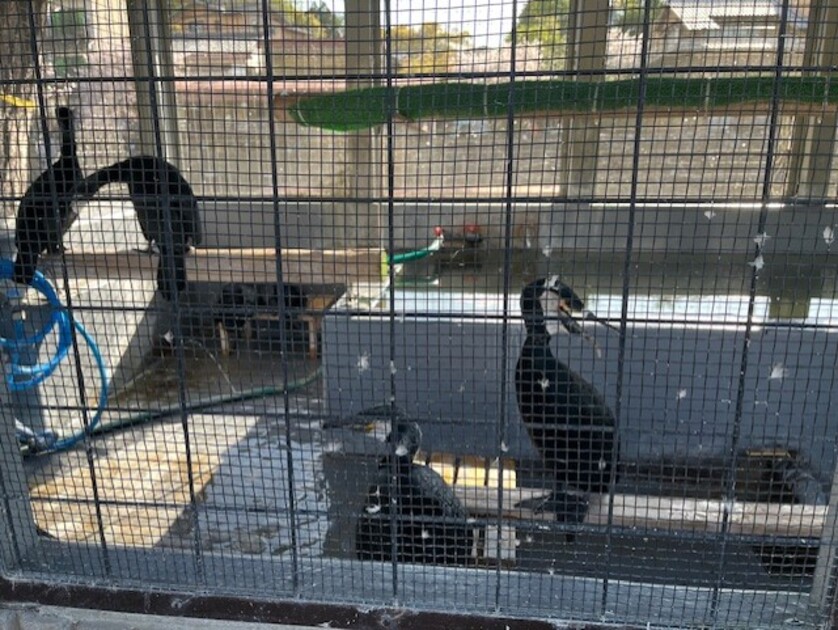 散策の途中、「鵜」が飼育されていました。鴨川で見かけることはありますが、これほど間近で見るのは初めて。