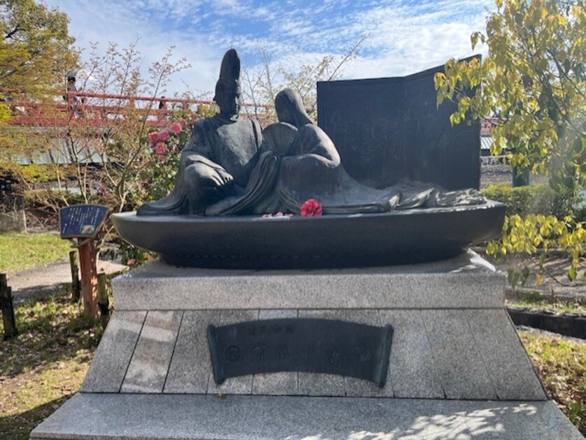 さらにすぐそばには、源氏物語の後半の舞台である「宇治十帖モニュメント」も。近くでご年配の方がバンド演奏されていて和やかな雰囲気でした。