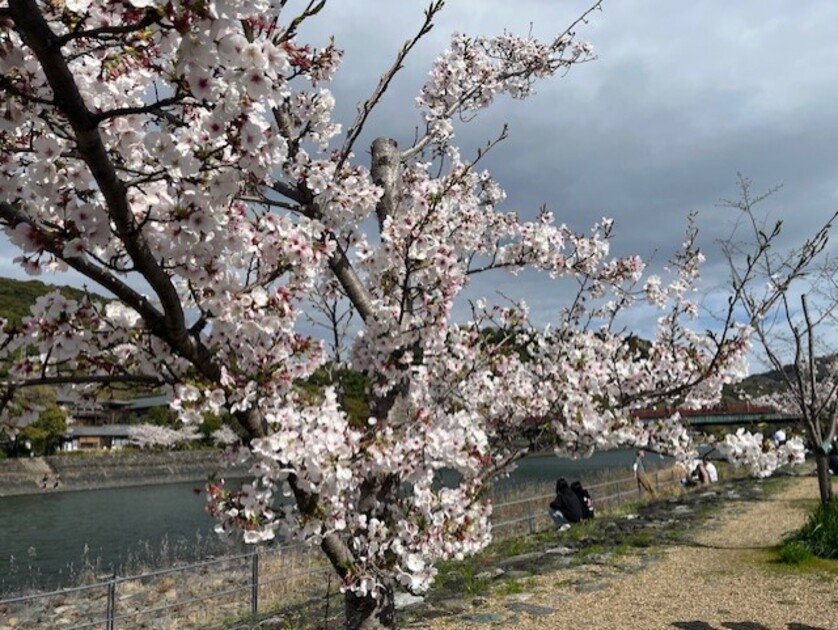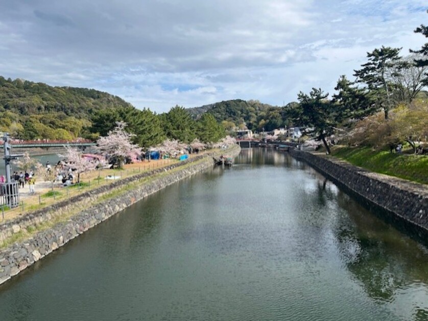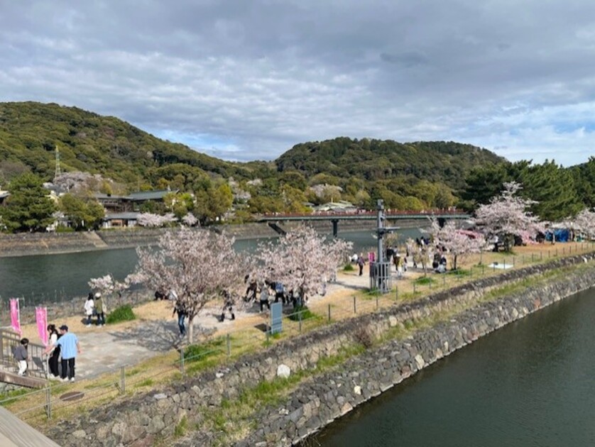 宇治川沿いにはたくさんの桜が咲き、ピクニックをしたり多くの人で賑わっていました。遠くから眺めても美しい。